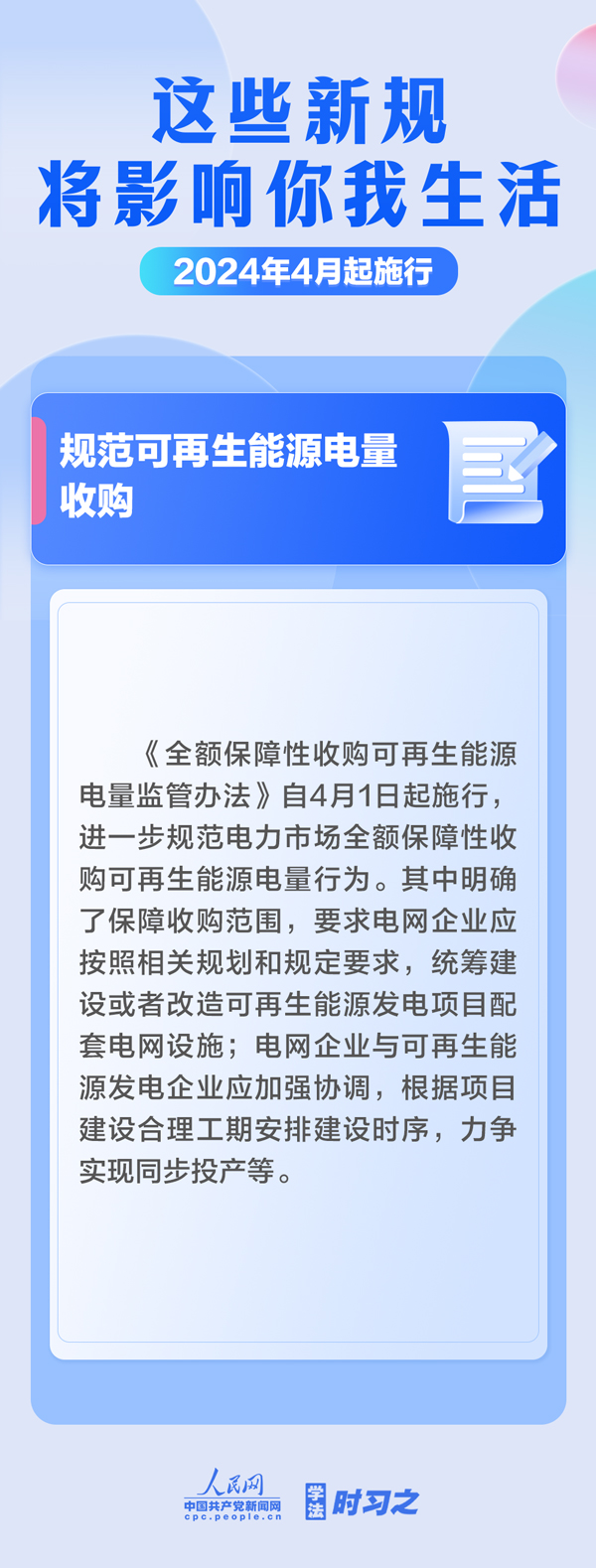 加強(qiáng)中央儲(chǔ)備棉管理;明確托育機(jī)構(gòu)質(zhì)量評(píng)估標(biāo)準(zhǔn);規(guī)范可再生能源電量收購(gòu)……4月起,這些新規(guī)施行,將影響你我生活。(薄晨棣)