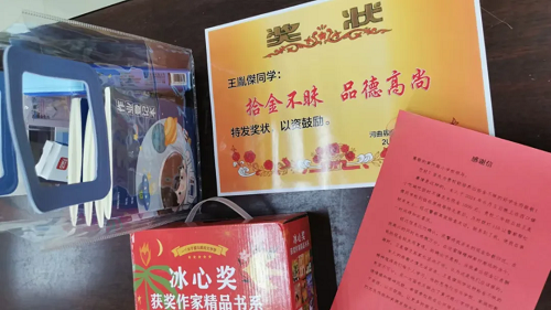 值班民警到達(dá)現(xiàn)場后了解了事情的原委。“不能辜負(fù)孩子的這一片心意!”民警拿出偵查破案的勁頭進(jìn)行了排查走訪,快速找到了失主王女士。經(jīng)信息比對無誤后,值班民警將1000元現(xiàn)金如數(shù)歸還。深懷感激之情的王女士當(dāng)場拿出部分現(xiàn)金要贈予王同學(xué),但王同學(xué)及其家人予以婉拒。6月10日,王女士帶著感謝信和學(xué)習(xí)用品找到民警,請民警轉(zhuǎn)交給王同學(xué)并轉(zhuǎn)達(dá)自己的心意。