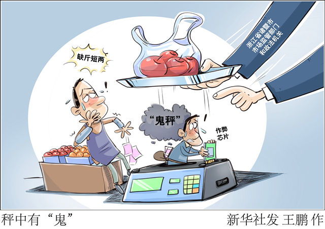 一臺小小的“鬼秤”,不僅侵害群眾合法權益,更有損公平誠信的市場環(huán)境。執(zhí)法部門要主動作為,為公序良俗撐腰,讓群眾利益得到保障;另一方面,遭遇缺斤短兩問題,消費者也不要忍氣吞聲,多和不法現(xiàn)象“較真”:買完菜上“安心秤”復稱一下,對不法行為堅決舉報。大家合力,一起讓“鬼秤”無處遁形。