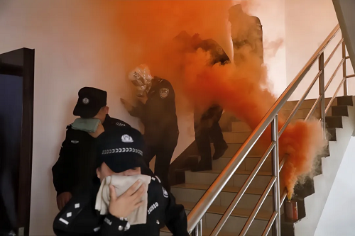 在應(yīng)急疏散演練環(huán)節(jié),隨著警報(bào)響起,干警們按照預(yù)定方案進(jìn)入應(yīng)急疏散狀態(tài),大家捂住口鼻、俯身彎腰,沿著安全通道有序撤離至安全區(qū)域。演練過程中,干警們表現(xiàn)出了高度的紀(jì)律性和團(tuán)隊(duì)協(xié)作精神,整個疏散過程迅速而有序,達(dá)到了預(yù)期演練效果。