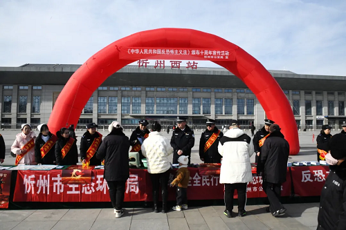 《中華人民共和國反恐怖主義法》頒布實(shí)施十周年之際,為深入貫徹總體國家安全觀,引導(dǎo)廣大人民群眾增強(qiáng)反恐意識(shí)、強(qiáng)化反恐責(zé)任、踐行反恐義務(wù),筑牢全社會(huì)反恐安全防線,12月26日上午,忻州市反恐怖領(lǐng)導(dǎo)小組在忻州西站東廣場(chǎng)開展“全民反恐 共創(chuàng)平安”主題宣傳活動(dòng)。