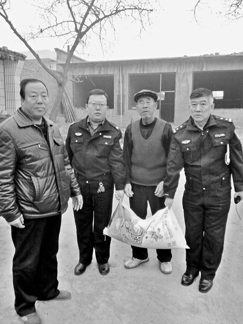 近年來,大隊把扶貧工作當作一項政治任務(wù)抓在手上,為了更好地精準扶貧,按計劃力爭提前完成扶貧攻堅任務(wù)。2015年,李晉生擔任了原平市南白鄉(xiāng)尚義村的第一書記,負責該村的幫扶工作。南白鄉(xiāng)尚義村是原平市的重點貧困村,也是交警大隊幫扶村,全村204人,貧困人口占80%。當年12月17日,他自籌2000多元,購買了米、面、糧、油,與大隊的4位民警來到了南白鄉(xiāng)尚義村走訪慰問特困家庭。在全市開展精準扶貧的攻堅階段,為了讓特困家庭度過溫暖的冬季,交警大隊民警進村入戶共慰問五保戶、特困戶8戶,為他們送去了面粉、大米和食用油。同時,大隊長還看望了90歲高齡的抗戰(zhàn)老兵趙書良,1925年出生的趙書良老人,17歲時就參軍,在抗日戰(zhàn)爭中多次立功授獎。當老人雙手接過慰問金后,激動地說:“還是共產(chǎn)黨好,人民警察和人民真是心連心啊!”