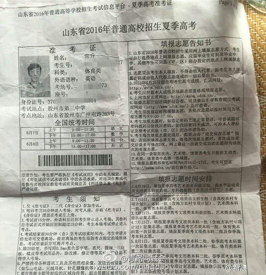 “如果不是他收到了通知書,我永遠(yuǎn)也不會(huì)知道這個(gè)秘密?!背I嬖V記者,他口中的“他”是室友兼摯友郭某。常升和郭某都是體育特長(zhǎng)生,兩人今年高考成績(jī)相仿,在填報(bào)志愿的當(dāng)天,先后用體育老師遲老師的電腦填報(bào)了志愿,均為陜西師范大學(xué)的免費(fèi)師范生。但是錄取通知一下,常升傻了眼,自己并沒有被錄取,但是比自己分?jǐn)?shù)更低的郭某卻收到了錄取通知書,而且陜西師范大學(xué)在山東招收的免費(fèi)師范生還沒有招滿,種種情況讓常升十分不理解。圖為常升高考相關(guān)信息。