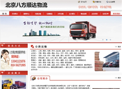 由于時(shí)間緊急,平常聯(lián)絡(luò)的物流公司暫時(shí)沒(méi)車(chē),配送不了。當(dāng)天,該公司的行政人員從網(wǎng)絡(luò)上搜索武漢到北京的物流專(zhuān)線,發(fā)現(xiàn)一家名為“八方順達(dá)物流”的公司,紅色主頁(yè)的網(wǎng)站上,顯示有客服電話、物流、接單、登記、調(diào)用安排、在途追蹤等具體信息。
