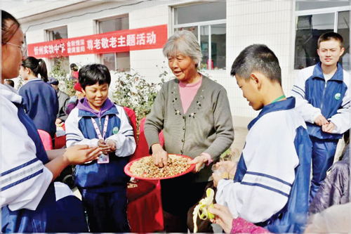 本報訊 為弘揚(yáng)中華優(yōu)秀傳統(tǒng)文化,倡導(dǎo)尊老、敬老、愛老、助老的傳統(tǒng)美德,引導(dǎo)師生樹立“尊老、敬老、愛老、助老”的良好風(fēng)尚,近期以來,忻州實驗中學(xué)校開展了“金秋情深愛滿重陽”尊老敬老系列主題活動。