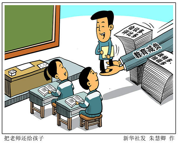 讓教師潛心教書、靜心育人,把更多時間和精力花在孩子們身上、投入到提升教學(xué)能力中,把時間還給老師,把老師還給孩子——這是教師和家長的心聲,也是全社會的呼聲。(新華社記者胡浩)