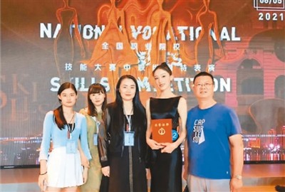 上海市浦東外事服務(wù)學(xué)校代表隊(duì)在二〇二一年全國職業(yè)院校技能大賽中奪得中職組二等獎(jiǎng)。圖為該校獲獎(jiǎng)隊(duì)員合影。(資料圖)