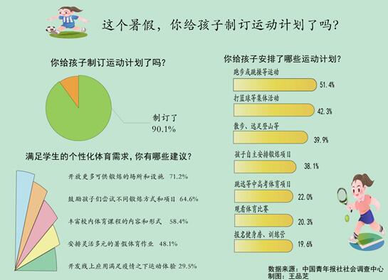 這個暑假,90.1%的受訪家長給孩子制訂了運動計劃。