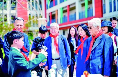 4月10日,中國科技館原館長王渝生(中)在重慶明遠未來小學(xué)參加科普活動。光明圖片