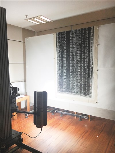 對石刻拓片進行古籍數字化拍攝。中國國家圖書館供圖