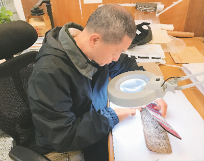中國國家圖書館古籍修復專家在進行少數民族文字古籍數字化前的維護。