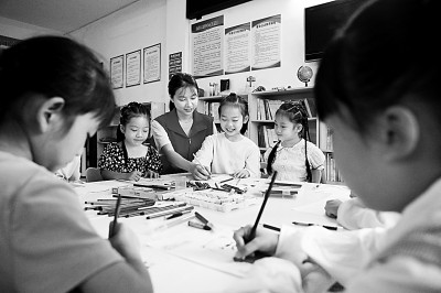 貴州省赤水市復興鎮(zhèn)新興社區(qū)“童伴媽媽”輔導孩子們繪畫。新華社發(fā)