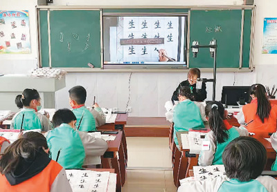 圖為寧夏回族自治區(qū)涇源縣城關(guān)第一小學(xué)的智慧書法課堂教學(xué)。資料圖片