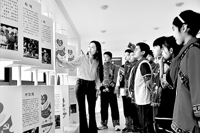 江蘇省如皋經(jīng)濟(jì)技術(shù)開發(fā)區(qū)第三實(shí)驗(yàn)小學(xué)“紅石榴家園”,統(tǒng)戰(zhàn)部門工作人員向?qū)W生介紹各民族文化習(xí)俗。吳樹建攝/光明圖片