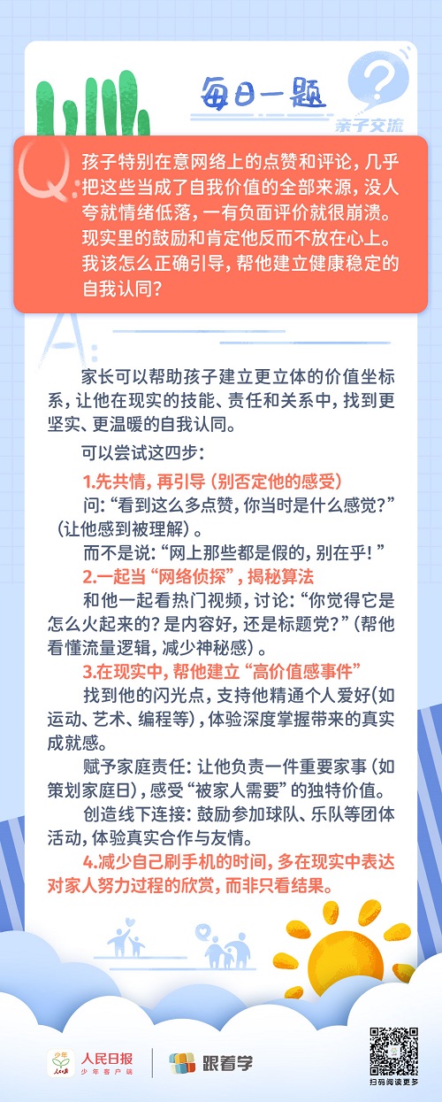 每日一題丨孩子過度依賴網(wǎng)絡(luò)點贊、評論來獲得自我認同,家長該如何正確引導(dǎo)?