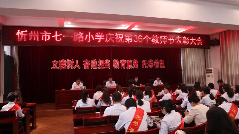金風(fēng)送爽,涼霜驚秋。伴隨著時光款款的腳步,相攜著歲月累累的果實,為傳承尊師重教的文明火種,增強教師的光榮感、責(zé)任感、使命感,培養(yǎng)學(xué)生尊師重教的良好品德,在第36個教師節(jié)即將來臨之際,9月9日下午,忻州市七一路小學(xué)舉行了“立德樹人奮進擔(dān)當(dāng),教育脫貧托舉希望”第36個教師節(jié)表彰活動,會議由郭彥君副校長主持,全體教職工參加了表彰大會。