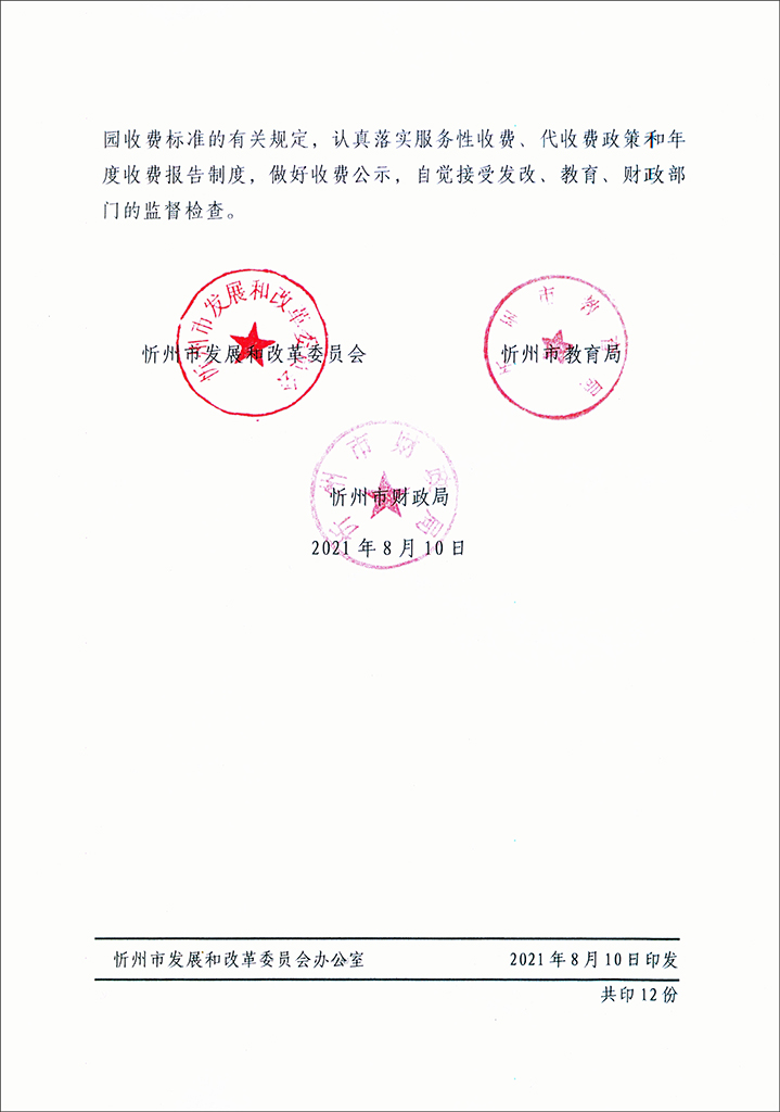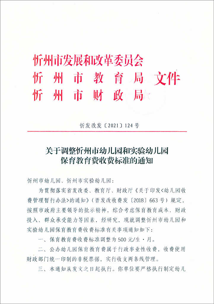 關(guān)于調(diào)整忻州市幼兒園和實(shí)驗(yàn)幼兒園保育教育費(fèi)收費(fèi)標(biāo)準(zhǔn)的通知