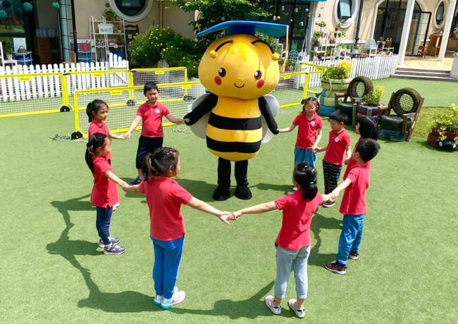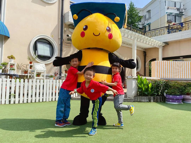 小育走進(jìn)徐匯區(qū)梅隴幼兒園,和萌萌噠小盆友比心(小育扮演者:趙旭華 攝影:宿銘珊)