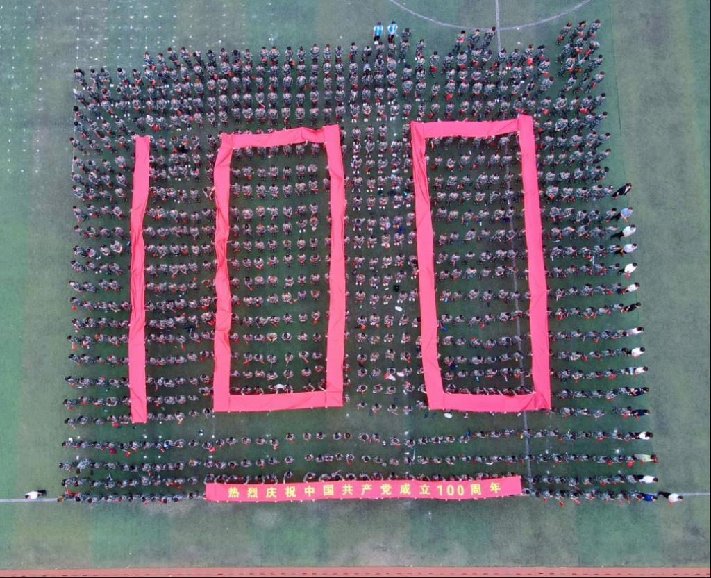 操場(chǎng)中央,由1000名2020級(jí)學(xué)生組成方隊(duì),呈現(xiàn)“100”字型,向黨致敬。活動(dòng)全程莊嚴(yán)肅穆,又不失青春的朝氣蓬勃和奮進(jìn)的斗志昂揚(yáng),顯現(xiàn)出師生對(duì)中國(guó)共產(chǎn)黨百年華誕的崇敬與祝福。