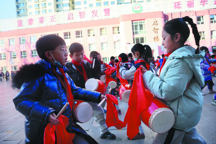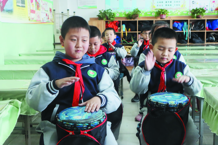作為一種歷史悠久的傳統(tǒng)民族藝術(shù),腰鼓節(jié)奏歡快,鼓聲清脆悅耳。由孩子們展示這種藝術(shù)形式,更能張揚(yáng)出獨(dú)特的藝術(shù)性,同時(shí)練招式、講秩序,長知識(shí)、練思辨。由來自全校的100名學(xué)生組成的腰鼓隊(duì)是市實(shí)驗(yàn)小學(xué)精心打造的一支規(guī)模相對(duì)較大的隊(duì)伍。董海燕老師是腰鼓隊(duì)的三位帶隊(duì)老師之一,還兼任198班的班主任,緊張的課堂教學(xué)之余,還要積極參與到教孩子們打腰鼓的第二課堂活動(dòng)中,董老師說,下一步,學(xué)校準(zhǔn)備打造千人腰鼓隊(duì),讓更多的孩子了解和掌握打腰鼓的技巧、技法,更好地弘揚(yáng)中華民族的傳統(tǒng)藝術(shù)。