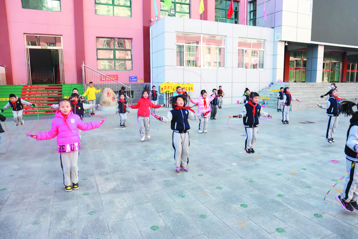 冬日暖陽下,忻州市實(shí)驗(yàn)小學(xué)校園里一派生機(jī)勃勃的景象。武術(shù)訓(xùn)練場上,孩子們正在認(rèn)真扎馬步、練拳術(shù),一招一式打得虎虎生威,眼睛里閃爍著堅(jiān)毅和自信的光芒。百人腰鼓隊(duì)排著整齊的隊(duì)伍,伴著音樂的節(jié)奏不停變換著步伐,鼓槌上的紅綢子上下舞動(dòng),看得人眼花繚亂?;ㄊ交@球挑戰(zhàn)籃球極限,展示籃球技術(shù)和表演的完美結(jié)合?;犹K中,孩子們?cè)诃h(huán)擺的繩索中做著各種跳躍動(dòng)作……操場上,熱火朝天,教學(xué)樓里,每一間教室里都散發(fā)著濃濃的趣味性?!耙黄惨晦?,書寫堂堂正正中國字”“編程要注意邏輯關(guān)系”“三原色是哪些顏色呢?”……這是市實(shí)驗(yàn)小學(xué)每周三開展的第二課堂綜合實(shí)踐活動(dòng),也是孩子們最興奮最高興的校園時(shí)光。