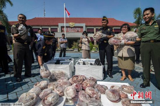 資料圖:當(dāng)?shù)貢r間2015年7月8日,印尼泗水,印尼海關(guān)官員查獲一批1.3噸將被運(yùn)往新加坡的冷凍穿山甲并焚燒銷毀。