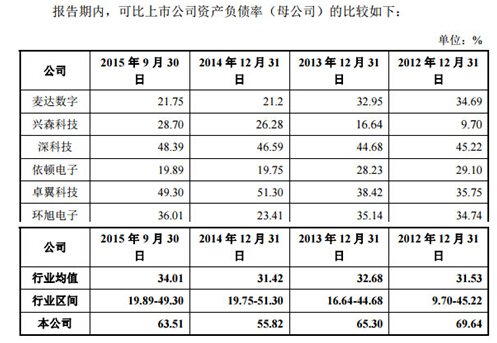 招股書顯示,2015年9月末,易德龍資產負債率較2014年上升近8個百分點至63.51%,比招股書所列同行業(yè)上市公司平均資產負債率高出近30個百分點。其中的主要負債是流動負債,截至2015年9月末,流動負債在負債中的占比高達95%,而同行業(yè)已上市公司平均占比為80.41%。