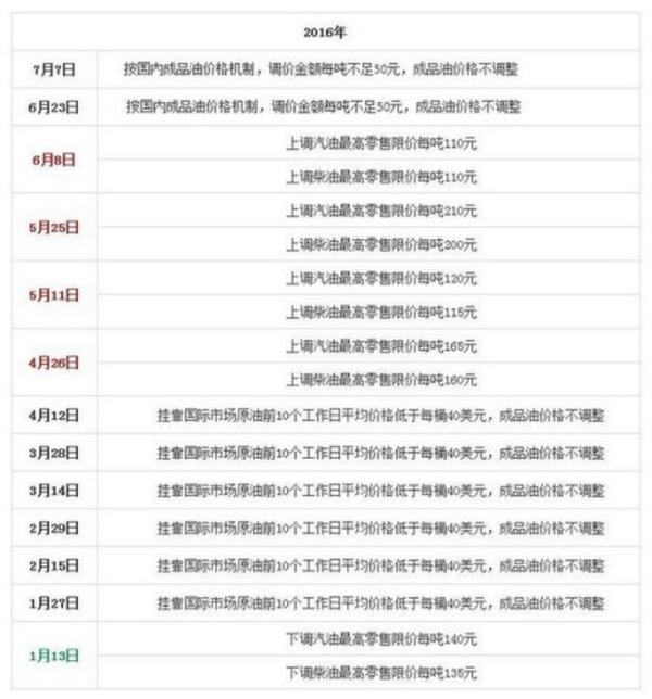 國家發(fā)改委歷次成品油價格調(diào)整匯總表。來源:隆眾石化網(wǎng)