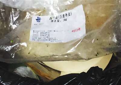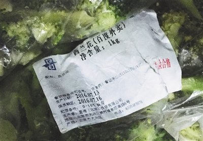 只見加熱后袋裝西蘭花標(biāo)簽上的生產(chǎn)日期已被浸泡模糊。一名女店員直接用剪刀剪開兩袋,倒入盆內(nèi)清洗,有些西蘭花顏色已變黃。該店員直接將變了顏色和蔫了的挑出,扔進(jìn)垃圾桶。西蘭花的外包裝保質(zhì)期顯示為7月13日至7月16日。凈含量為1kg。對于過期西蘭花為何還要用?一名女店員說:“今天用西蘭花配菜都是過期的,不用咋辦?”