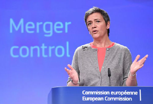 4月5日,歐洲反壟斷監(jiān)管負責(zé)人瑪格麗特·維斯特格宣布中國化工收購先正達通過反壟斷審批。(法新社)