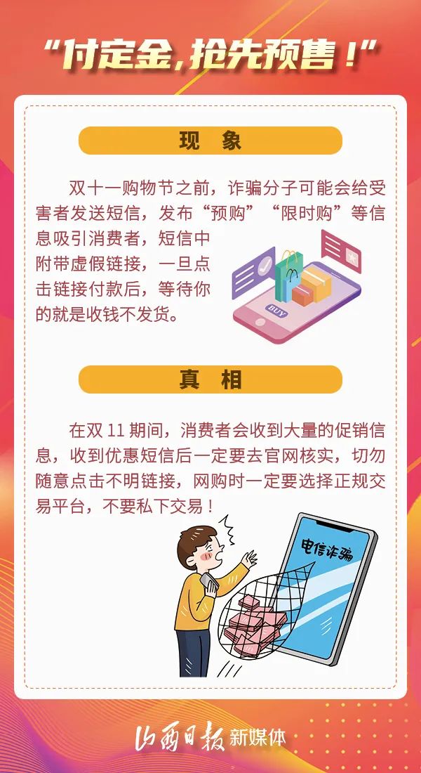 隨著一年一度的“雙十一”電商購物節(jié)臨近,各大電商平臺(tái)也都開始開啟不同形式的促銷預(yù)熱活動(dòng),與此同時(shí),不法分子也在伺機(jī)而動(dòng),為了避免大家落入騙局,下面為大家盤點(diǎn)近期出現(xiàn)的新型詐騙套路,戳穿騙子的真面目,守護(hù)好你的錢袋子。