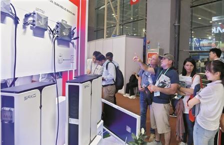 4月16日,采購商在第135屆廣交會(huì)上了解太陽能發(fā)電設(shè)備。電動(dòng)載人汽車(新能源汽車)、鋰電池和太陽能電池被稱為我國外貿(mào)“新三樣”。統(tǒng)計(jì)數(shù)據(jù)顯示,2023年,我國出口機(jī)電產(chǎn)品當(dāng)中,電動(dòng)載人汽車、鋰電池和太陽能電池等“新三樣”產(chǎn)品合計(jì)出口1.06萬億元,首次突破萬億大關(guān)?!靶氯龢印鳖I(lǐng)跑出口,激發(fā)外貿(mào)新動(dòng)能,推進(jìn)中國經(jīng)濟(jì)高質(zhì)量發(fā)展。本屆廣交會(huì)上,“新三樣”相關(guān)展區(qū)“光電鋰”交易持續(xù)火爆。 新華社記者 盧漢欣 攝