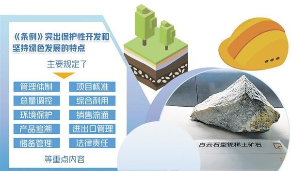 《稀土管理?xiàng)l例》(以下簡(jiǎn)稱《條例》)日前公布,自2024年10月1日起施行?!稐l例》明確,稀土資源屬于國(guó)家所有,國(guó)家依法加強(qiáng)對(duì)稀土資源的保護(hù),對(duì)稀土資源實(shí)行保護(hù)性開采。同時(shí),鼓勵(lì)和支持稀土產(chǎn)業(yè)新技術(shù)、新工藝、新產(chǎn)品、新材料、新裝備的研發(fā)和應(yīng)用,持續(xù)提升稀土資源開發(fā)利用水平,推動(dòng)稀土產(chǎn)業(yè)高端化、智能化、綠色化發(fā)展。專家認(rèn)為,《條例》首次以行政立法形式規(guī)范稀土資源的開發(fā)利用,主要規(guī)定了管理體制、項(xiàng)目核準(zhǔn)、總量調(diào)控、綜合利用、環(huán)境保護(hù)、銷售流通、產(chǎn)品追溯、進(jìn)出口管理、儲(chǔ)備管理、法律責(zé)任等重點(diǎn)內(nèi)容,突出了保護(hù)性開發(fā)和堅(jiān)持綠色發(fā)展的特點(diǎn),對(duì)推動(dòng)稀土產(chǎn)業(yè)高質(zhì)量發(fā)展具有重大意義。規(guī)范稀土資源開發(fā)利用稀土是現(xiàn)代工業(yè)中不可或缺的重要元素和關(guān)鍵戰(zhàn)略資源。中國(guó)有色金屬工業(yè)協(xié)會(huì)黨委書記、會(huì)長(zhǎng)葛紅林表示,稀土被譽(yù)為“工業(yè)維生素”,是高新技術(shù)產(chǎn)業(yè)和國(guó)防科技工業(yè)的關(guān)鍵原料,是關(guān)系國(guó)家安全和國(guó)民經(jīng)濟(jì)命脈的戰(zhàn)略資源,對(duì)推動(dòng)新型工業(yè)化發(fā)展具有不可替代性。中國(guó)稀土集團(tuán)黨委書記、董事長(zhǎng)敖宏介紹,稀土是改造提升傳統(tǒng)產(chǎn)業(yè)、發(fā)展戰(zhàn)略性新興產(chǎn)業(yè)和國(guó)防科技工業(yè)不可或缺的關(guān)鍵材料。隨著新能源汽車、風(fēng)力發(fā)電、智能制造等戰(zhàn)略性新興產(chǎn)業(yè)和節(jié)能電機(jī)等傳統(tǒng)產(chǎn)業(yè)改造升級(jí),全球稀土需求快速增加。近年來(lái),我國(guó)圍繞稀土行業(yè)準(zhǔn)入標(biāo)準(zhǔn)、行業(yè)整合、環(huán)境保護(hù)等方面出臺(tái)了多項(xiàng)政策措施,產(chǎn)業(yè)發(fā)展良好,帶動(dòng)建立起相對(duì)完整的產(chǎn)業(yè)體系,資源儲(chǔ)量、產(chǎn)量、消費(fèi)量、貿(mào)易量均居世界第一位,并持續(xù)加強(qiáng)稀土資源保護(hù)開發(fā)和合理利用,為科技進(jìn)步和經(jīng)濟(jì)社會(huì)發(fā)展作出了突出貢獻(xiàn)。瞄準(zhǔn)新一輪科技革命和產(chǎn)業(yè)變革方向,我國(guó)加快稀土供給側(cè)結(jié)構(gòu)性改革,不斷開辟發(fā)展新領(lǐng)域新賽道、塑造發(fā)展新動(dòng)能新優(yōu)勢(shì),產(chǎn)業(yè)鏈不斷完善,產(chǎn)業(yè)規(guī)模不斷擴(kuò)大,產(chǎn)品品種不斷豐富,產(chǎn)品質(zhì)量不斷提高,市場(chǎng)規(guī)模不斷擴(kuò)大,國(guó)際影響力持續(xù)提升。但稀土管理仍存在一些突出問題,包括覆蓋全產(chǎn)業(yè)鏈的管理職責(zé)、監(jiān)管措施有待完善,產(chǎn)業(yè)創(chuàng)新能力和綠色化智能化水平亟需提高,行業(yè)秩序需要進(jìn)一步規(guī)范,整治非法開采或非法冶煉分離、無(wú)指標(biāo)或超指標(biāo)生產(chǎn)、買賣非法稀土產(chǎn)品等違法行為的手段不足、處罰力度不夠。隨著行業(yè)的不斷發(fā)展,產(chǎn)業(yè)鏈條的持續(xù)延伸,稀土產(chǎn)業(yè)缺少綜合性法律法規(guī)的問題日益凸顯,難以滿足行業(yè)高質(zhì)量發(fā)展需求。稀土行業(yè)涵蓋開采、冶煉分離、產(chǎn)品流通、二次利用、進(jìn)出口以及儲(chǔ)備等諸多環(huán)節(jié),涉及中央政府多個(gè)管理部門,亟需依法建立分工明確、密切配合的管理體制。葛紅林認(rèn)為,稀土產(chǎn)業(yè)大而不強(qiáng)、全而不精的問題依然存在,在制度保障銜接、資源保護(hù)性開發(fā)、原始基礎(chǔ)創(chuàng)新、行業(yè)秩序規(guī)范等方面仍面臨一些困難和挑戰(zhàn)?!疤貏e是在工藝綠色化、產(chǎn)品高端化、制造智能化方面有待提升,產(chǎn)業(yè)結(jié)構(gòu)要持續(xù)優(yōu)化,產(chǎn)業(yè)秩序需要進(jìn)一步規(guī)范。”敖宏說(shuō)。推進(jìn)產(chǎn)業(yè)轉(zhuǎn)型升級(jí)包鋼(集團(tuán))公司黨委常委、副總經(jīng)理兼北方稀土黨委書記、董事長(zhǎng)劉培勛認(rèn)為,《條例》為解決制約產(chǎn)業(yè)高質(zhì)量發(fā)展的堵點(diǎn)、難點(diǎn)開出了法治良方。完善了生態(tài)環(huán)境保護(hù)、資源儲(chǔ)備的有關(guān)規(guī)定,形成了更加科學(xué)有效的管理方式,更有利于稀土資源的保護(hù)性開發(fā);明確提出國(guó)家鼓勵(lì)科技創(chuàng)新和人才培養(yǎng),支持稀土新產(chǎn)品、新材料、新工藝的研發(fā)和產(chǎn)業(yè)化,更有利于稀土資源的高質(zhì)化利用;建立起從國(guó)家到地方再到企業(yè)分層管理、各司其職、各負(fù)其責(zé)的治理體系,并首次對(duì)違法違規(guī)行為設(shè)定處罰標(biāo)準(zhǔn),進(jìn)一步加壓引導(dǎo)行業(yè)秩序整頓,更有利于行業(yè)規(guī)范化管理?!稐l例》致力于促進(jìn)稀土產(chǎn)業(yè)高質(zhì)量發(fā)展。工業(yè)和信息化部原材料工業(yè)司相關(guān)負(fù)責(zé)人解讀,國(guó)家對(duì)稀土產(chǎn)業(yè)發(fā)展實(shí)行統(tǒng)一規(guī)劃,并突出科技創(chuàng)新。鼓勵(lì)和支持稀土產(chǎn)業(yè)新技術(shù)、新工