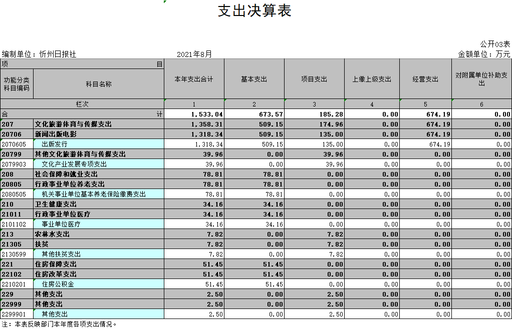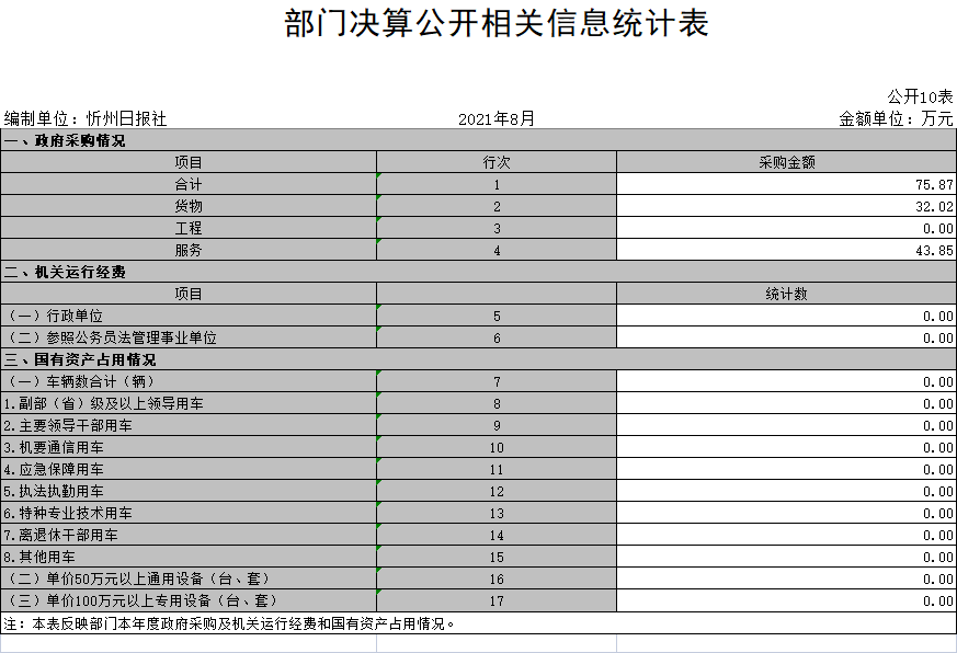 (五)政府性基金決算情況:忻州日報社不涉及政府性基金,故政府性基金決算支出為0.