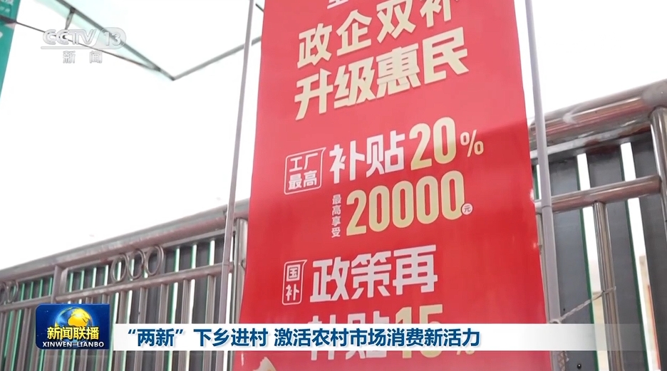央視網(wǎng)消息(新聞聯(lián)播):“兩新”政策實(shí)施以來,各地通過擴(kuò)大補(bǔ)貼范圍、優(yōu)化服務(wù)等措施,將實(shí)惠和便利送到鄉(xiāng)村,激發(fā)農(nóng)村市場消費(fèi)活力。