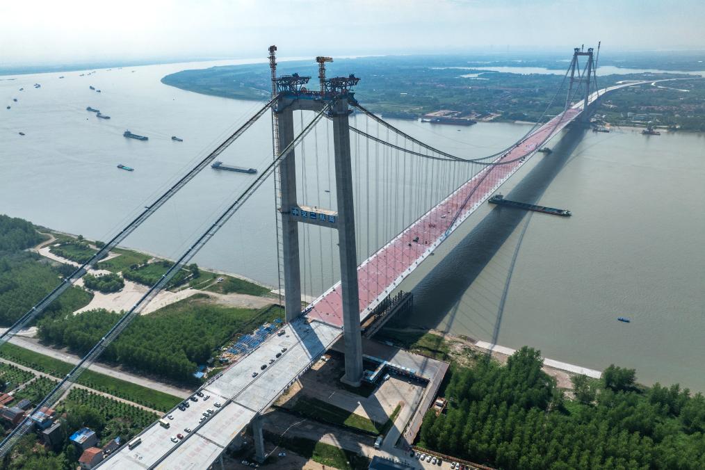 7月26日拍攝的合龍后的雙柳長(zhǎng)江大橋(無(wú)人機(jī)照片)。新華社記者 肖藝九 攝??