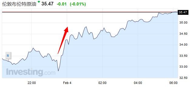 美國原油期貨結(jié)算價報每桶32.28美元,大漲2.40美元,或8%。布蘭特原油期貨結(jié)算價報每桶35.04美元,勁升2.32美元,或7.1%,盤中高見35.11美元。
