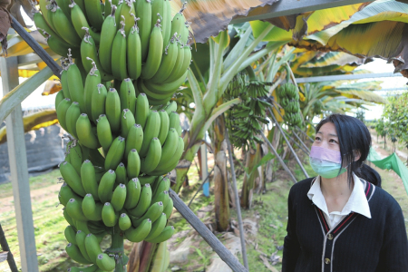 大棚內(nèi),成熟的香蕉掛滿(mǎn)枝頭,填補(bǔ)了北方無(wú)自產(chǎn)南方水果的空白。
