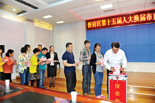 李俊明在黨群口市委辦公廳選區(qū)投票。上午9時,在黨群口市委辦公廳選區(qū),工作人員首先清點到會人數(shù)、核驗選民身份并分發(fā)選票,主持人宣讀了選舉程序,選民舉手表決通過了選舉辦法、總監(jiān)票人、監(jiān)票人、計票人等選舉工作人員名單??偙O(jiān)票人、監(jiān)票人現(xiàn)場查驗票箱后,選民認真填寫選票,然后依次有序走到票箱前為自己信任的候選人鄭重投下選票。市直黨群口市委辦公廳選區(qū)實際到會投票人數(shù)85人,因公外出人員依照法律規(guī)定程序委托他人代為投票。選舉現(xiàn)場氣氛莊嚴、秩序井然,許多老同志也踴躍參加投票。投票結束后,總監(jiān)票人、監(jiān)票人現(xiàn)場加封票箱。當日忻府區(qū)122個選區(qū)同步進行區(qū)人大代表選舉投票。