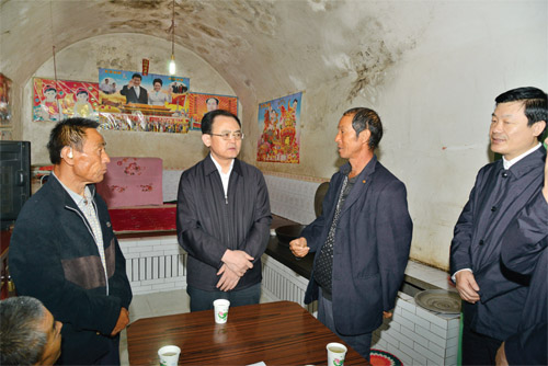 圖為李俊明在保德縣窯洼鄉(xiāng)前白家梁村了解群眾搬遷意愿和實地脫貧情況。(范濤 攝)
