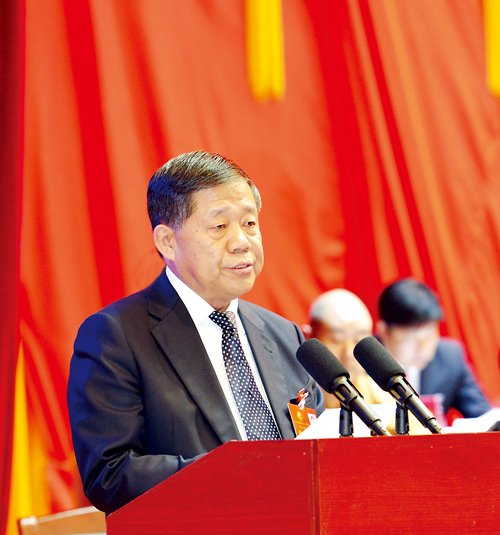 秦新年代表市三屆人大常委會(huì)作工作報(bào)告。宮愛(ài)文 攝