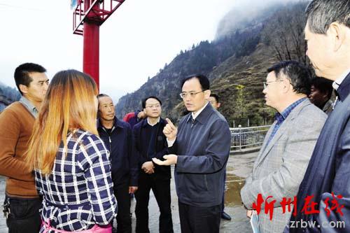 圖為市委副書記、 市長鄭連生在代縣神澗村與縣鄉(xiāng)村干部探討農村貧困人口脫貧大計。 石俊文 攝