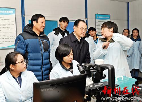 圖為市委書(shū)記李俊明在開(kāi)發(fā)區(qū)新入駐正在建設(shè)中的山西培森生物制品公司調(diào)研。