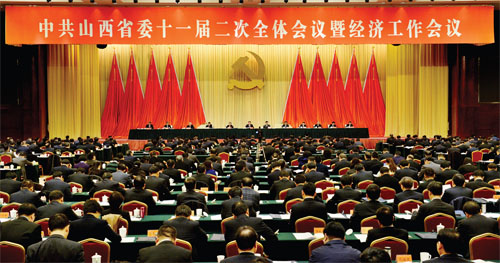 中國共產(chǎn)黨山西省第十一屆委員會第二次全體會議暨經(jīng)濟工作會議會場。(山西日報記者 李聯(lián)軍 李兆民 攝)