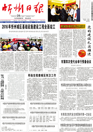 9月27日,2016年忻州城區(qū)基礎設施建設工程竣工儀式在新建成的牧馬路北延與旭來街交叉口舉行。宣布2016年忻州城區(qū)基礎設施建設工程竣工。當年城區(qū)新建改造道路30條,總長25.79公里,總投資9億元,其中工程建安費5億元、征地拆遷費4億元。30條道路分別是牧馬路北延、牧馬路南延、慕山路南延、新建路南段改造等4條主干道,頓奇街、南環(huán)街、安康路、公園西街、云中南路、健康街西延、建設路南延、通崗路南延等8條次干道,北橫三街、學府西街、氣象南巷、興業(yè)路、利民西街北二巷等18條支路。與此同時,南起忻五線,北至泡池村北,全長10.88公里的208國道改線二期工程,已于9月25日竣工通車。(2016年9月28日《忻州日報》)