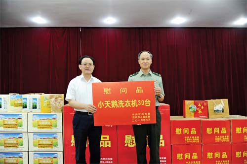 7月27日,以市人大常委會主任賈雪峰為團長的慰問團先后到忻州軍分區(qū)、駐代縣某部和駐定襄某部,對部隊官兵進行了慰問,為他們送去節(jié)日的問候與祝福,并送上慰問品。市領(lǐng)導(dǎo)魏廣才、邊升陽一同慰問。