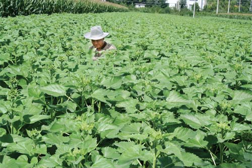 近年來,原平市積極引導(dǎo)農(nóng)民大力發(fā)展特色種植業(yè),有效促進(jìn)農(nóng)民增產(chǎn)增收,加快致富奔小康。圖為8 月26 日原平市小河村農(nóng)民正在地里管理長(zhǎng)勢(shì)喜人的墨葵。趙春曉 攝