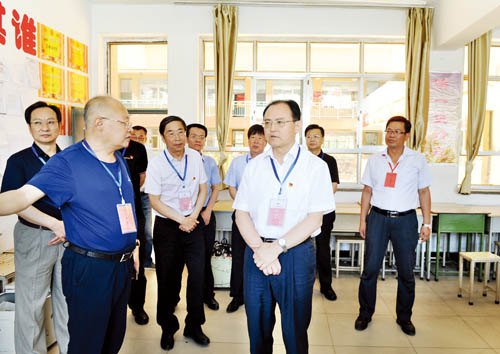圖為省人大常委會(huì)副主任、市委書記李俊明在忻州一中考點(diǎn)巡視高考工作。(本報(bào)記者 劉紀(jì)森 攝)