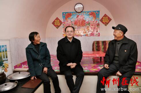 圖為省人大常委會(huì)副主任、市委書(shū)記李俊明在偏關(guān)縣新關(guān)鎮(zhèn)高家上石會(huì)村貧困戶(hù)高長(zhǎng)后家,聽(tīng)說(shuō)去年收入六萬(wàn)元,高興地鼓勵(lì)他今年再大干增收。本報(bào)記者劉紀(jì)森攝