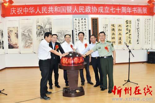 省人大常委會副主任、市委書記李俊明,省政協(xié)副主席席小軍,市人大常委會主任王珍,市政協(xié)主席劉鋼柱,市委常委、宣傳部長陳義青,市委常委、秘書長崔建新,忻州軍分區(qū)司令員李志強,忻州師范學(xué)院院長張虎芳,副市長安書田,市政協(xié)副主席王慶榮、高志偉、黃登宇、吳培英,市人大常委會秘書長張?zhí)m軍,市政府秘書長郭寶厚,市政協(xié)秘書長王志剛,已退休的市政協(xié)老領(lǐng)導(dǎo)范懷成、張明成、楊學(xué)書、王志勇等,太原、陽泉、晉中市政協(xié)領(lǐng)導(dǎo)及著名書畫家代表出席開展儀式。忻州籍著名軍旅書畫家郭明高、劉傳光、張全美,國家一級美術(shù)師、中國美術(shù)家協(xié)會會員、廣西桂林的龍山農(nóng)先生等應(yīng)邀出席了開展儀式。劉鋼柱宣布書畫展開展,李俊明、席小軍、郭明高、王珍、劉鋼柱、李志強一起觸動啟動球。王志剛主持開展儀式,高志偉致辭。